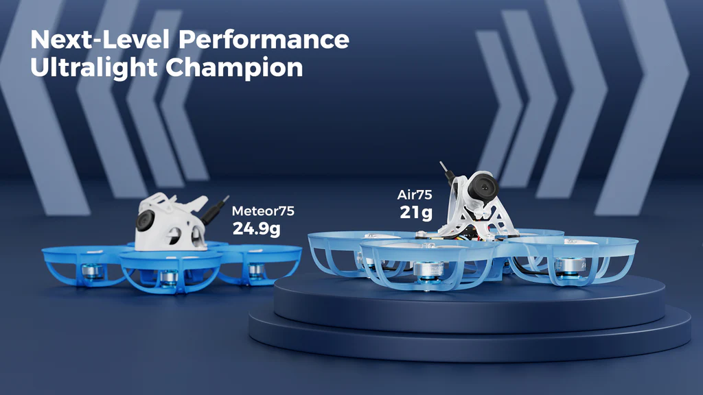 W erze, gdzie liczą się milisekundowe decyzje, błyskawiczna przyjemność i ekstremalna prędkość, Air75 wynosi mistrzostwo na nowy poziom! Przygotuj się na eksplozję możliwości dzięki ulepszeniom, które przewyższają serię Meteor. Waży zaledwie 21 g, a mimo to oferuje niezwykłą wydajność. Wyposażony w Air Canopy, ramę Air75, kontroler lotu Air Brushless Flight Controller (4IN1) oraz nową opcjonalną baterię LAVA 1S 450mAh 75C, która podkreśla jego ultra-lekki charakter. Air75 króluje jako niekwestionowany lider wśród ultra-lekkich dronów i mistrz błyskawicznej reakcji!