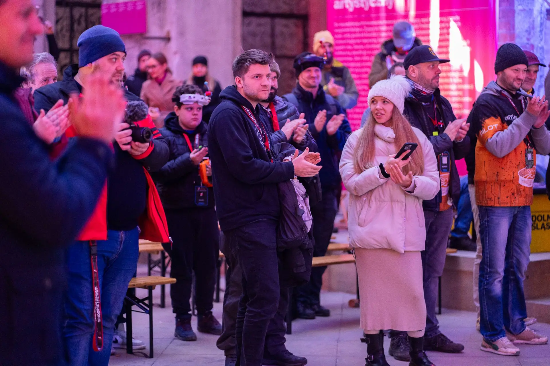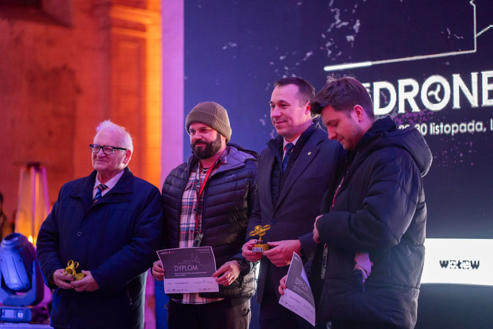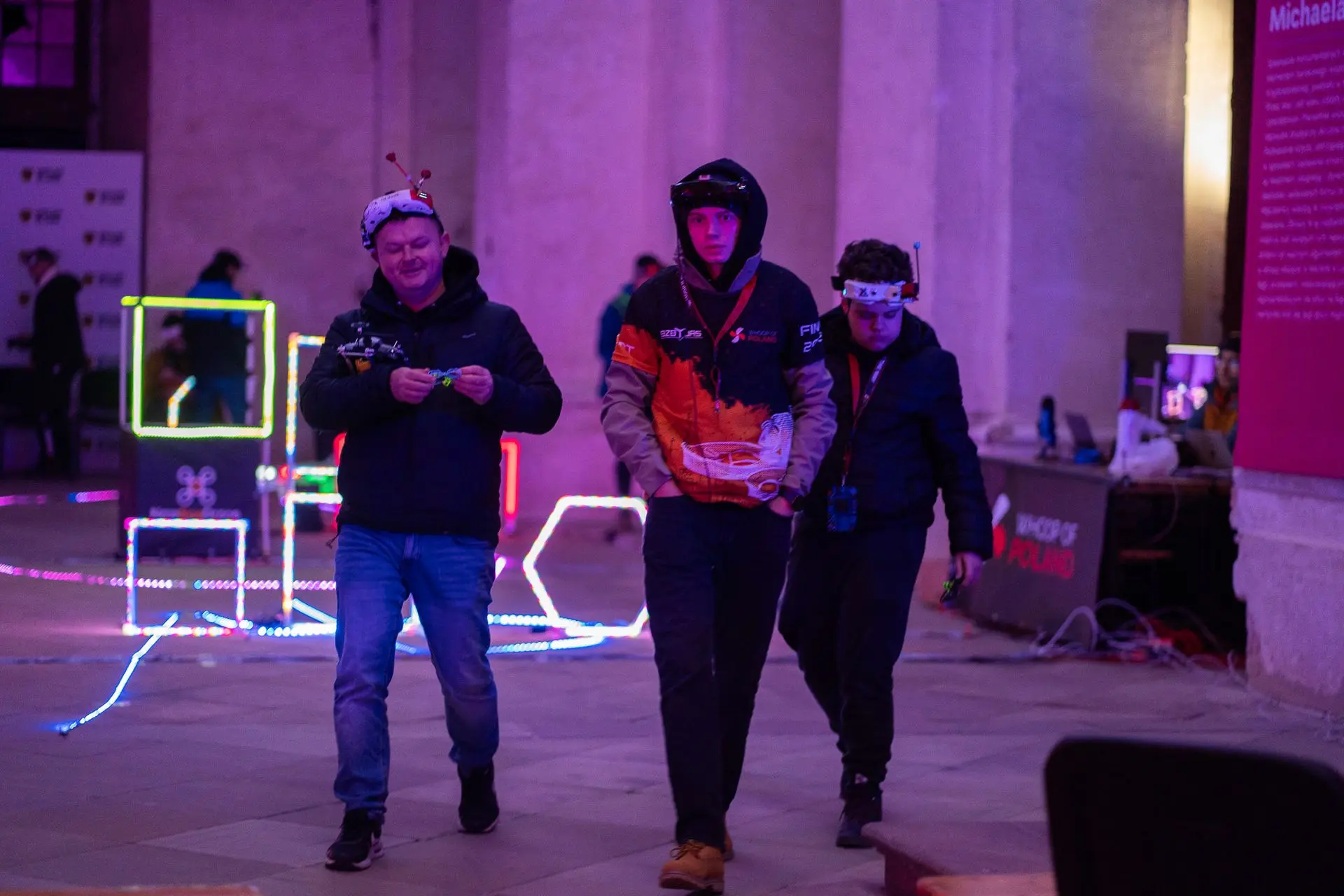 Sobota była dniem finałów, podczas których ponad 80 najlepszych pilotów z Polski, Czech, Norwegii, Holandii i Niemiec rywalizowało na dwóch kolorowych, podświetlonych torach. Dzięki zastosowaniu autorskich rozwiązań od Whoop of Poland widzowie mogli obserwować zmagania zawodników z perspektywy samych dronów na ogromnym telebimie. To połączenie technologii i emocji stworzyło widowisko na najwyższym poziomie.
