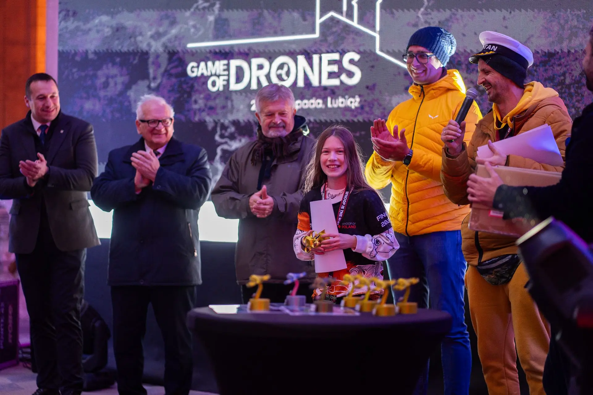 Game of Drones to największe wyścigi dronów typu Tiny Whoop w Polsce i Europie. Tiny Whoop to małe, zwinne drony, które są wyposażone w kamery FPV, umożliwiające pilotom kontrolowanie ich z perspektywy pierwszej osoby. Dzięki tej technologii zarówno zawodnicy, jak i widzowie mogą poczuć się, jakby znajdowali się na pokładzie drona. Wydarzenie łączy w sobie elementy sportu, nowoczesnej technologii oraz interakcji ze światem wirtualnym i metawersum.