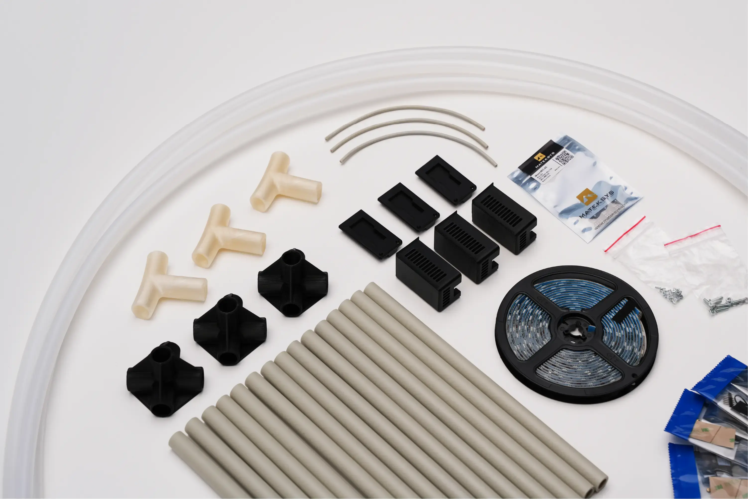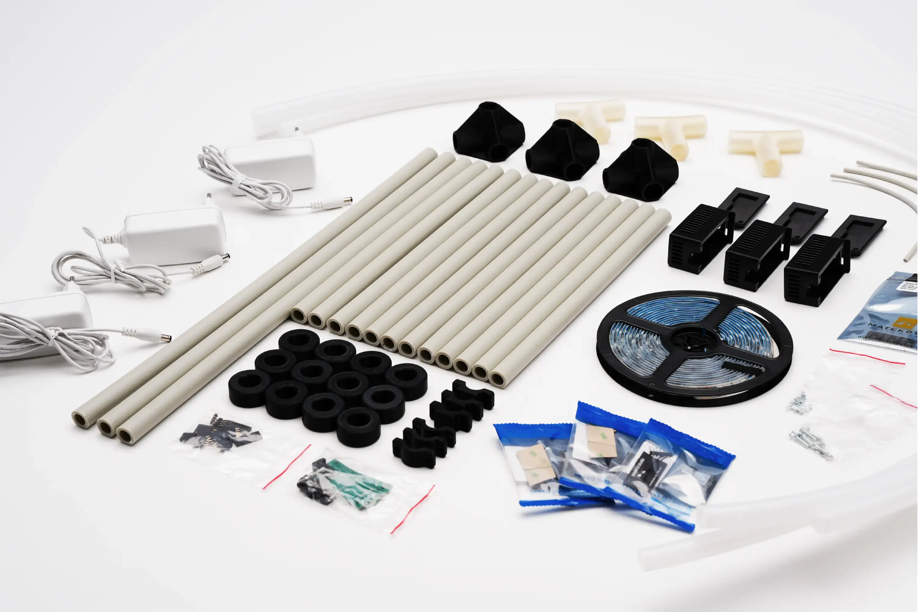 FPV LED Gates is a DIY kit for building three glowing FPV race gates for a micro drone track. Designed for indoor use, the gates are app-controlled and fully customizable. Perfect for practicing FPV flying while learning the basic soldering and microcontroller programming. A detailed user manual is included, and the tools required for assembly are sold separately in the FPV Repair Kit.